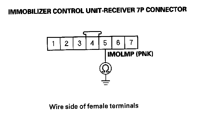 11. Check for continuity between the immobilizer control unit-receiver 7P connector No. 5 (IMOLMP) terminal and body ground.
