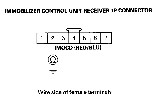 35. Check for continuity between the immobilizer control unit-receiver 7P connector No. 2 (IMOCD) terminal and body ground.