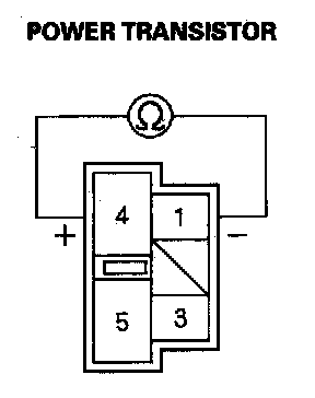 2. Measure the resistance between the No. 1 and No. 4 terminals of the power transistor. It should be about 1.4 - 1.5 kOhms.