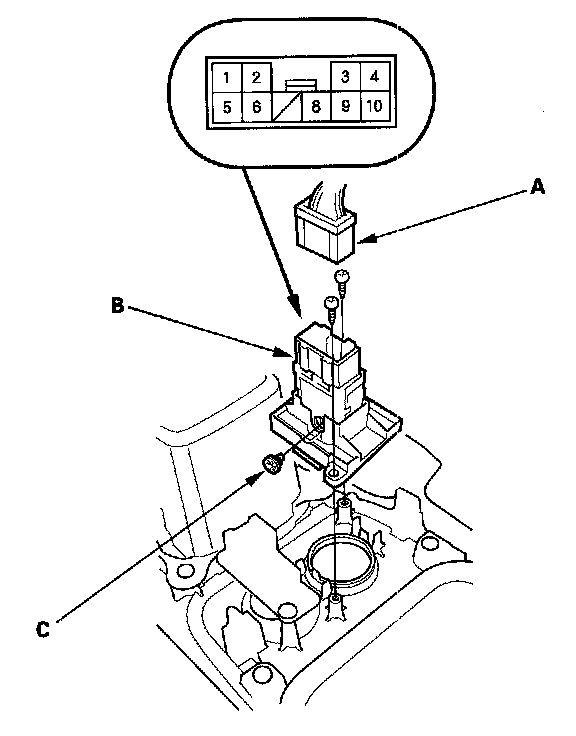 2. Disconnect the 10P connector (A) from the hazard warning switch (B).