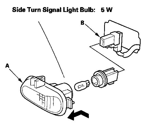 Push the side turn signal light (A) forward, then remove it from the fender.