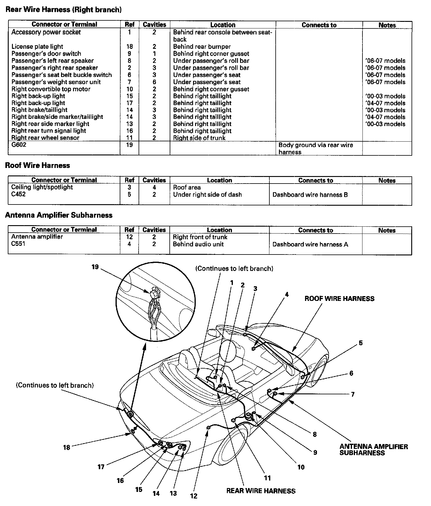 Rear Wire Harness (Right Branch) / Roof Wire Harness / Antenna Amplifier Subharness: