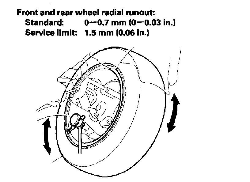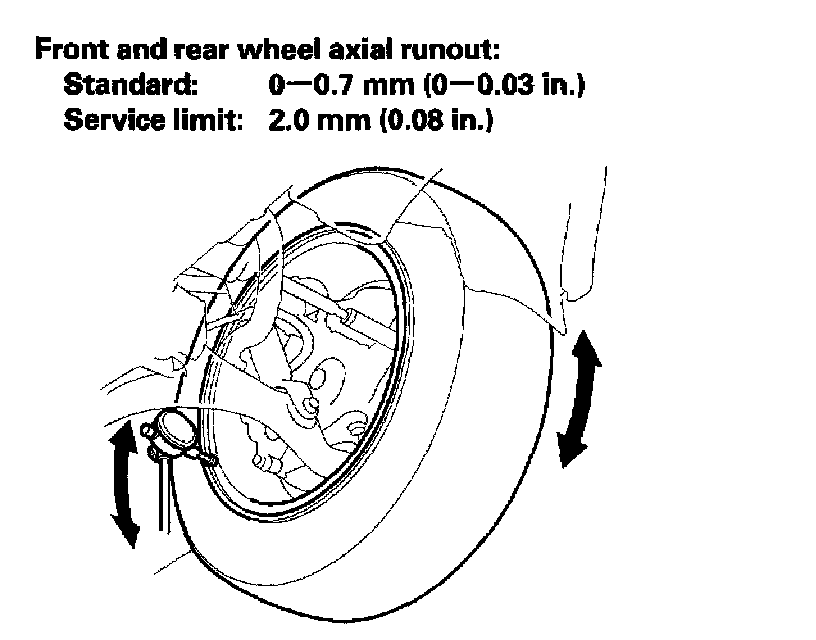 6. If the bearing end play is within the specification but the wheel runout is more than the service limit, replace the wheel.