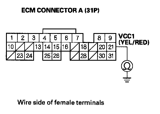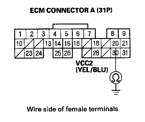 31. Check for continuity between ECM connector terminal E24 and body ground.