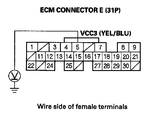 28. Check for continuity between ECM connector terminal E11 and body ground.
