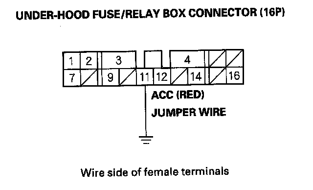 9. Momentarily connect under-hood fuse/relay box 16P connector terminal No. 11 to body ground with a jumper wire several times.