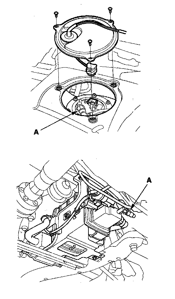 6. Reconnect the negative cable to the battery, and turn the ignition switch ON (II) (but do not operate the starter motor). The fuel pump will run for about 2 seconds, and fuel pressure will rise. Repeat two or three times, and check for leakage in the fuel supply system.