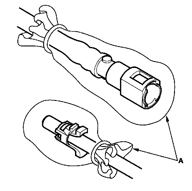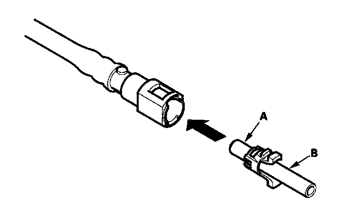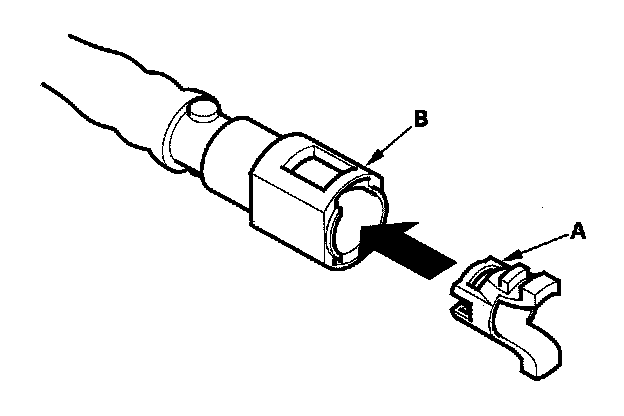 2. Insert a new retainer (A) into the connector (B) if the retainer is damaged, or after: