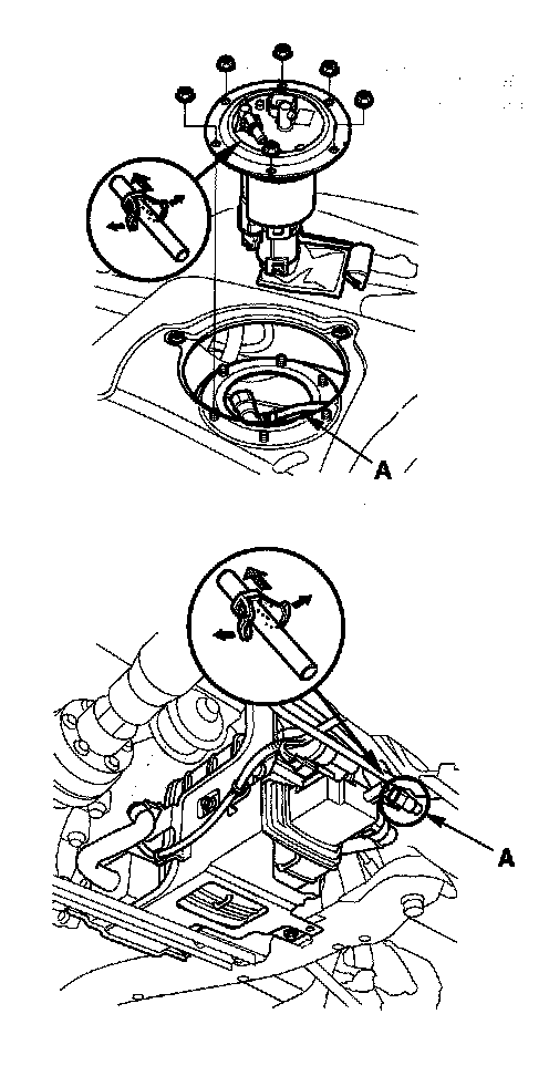 Fuel Line/Quick-Connect Fitting RemovalNOTE: Before you work on the fuel lines and fittings, read the "Fuel Line/Quick-Connect Fitting Precautions".