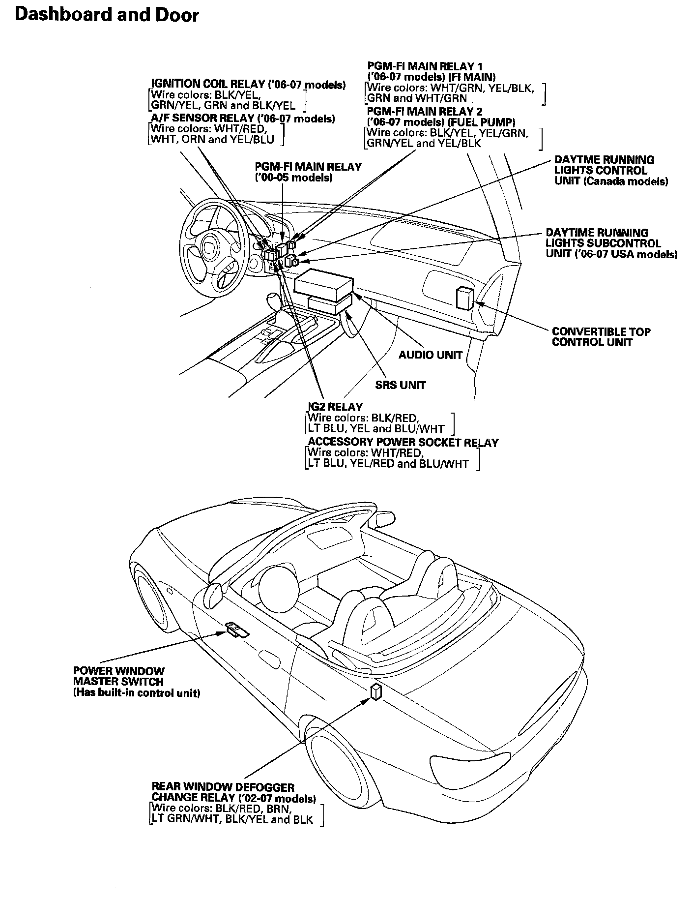Relay And Control Unit Locations Dashboard And Door:
