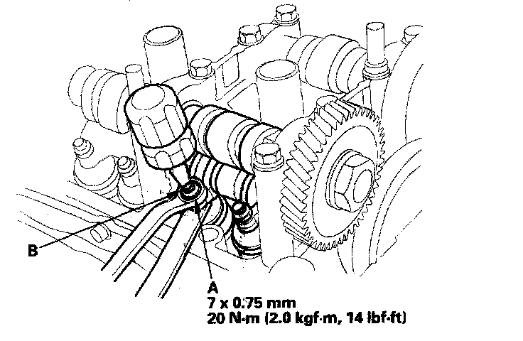 5. If you feel too much or too little drag, loosen the locknut (A), and turn the adjusting screw (B) until the drag on the feeler gauge is correct.