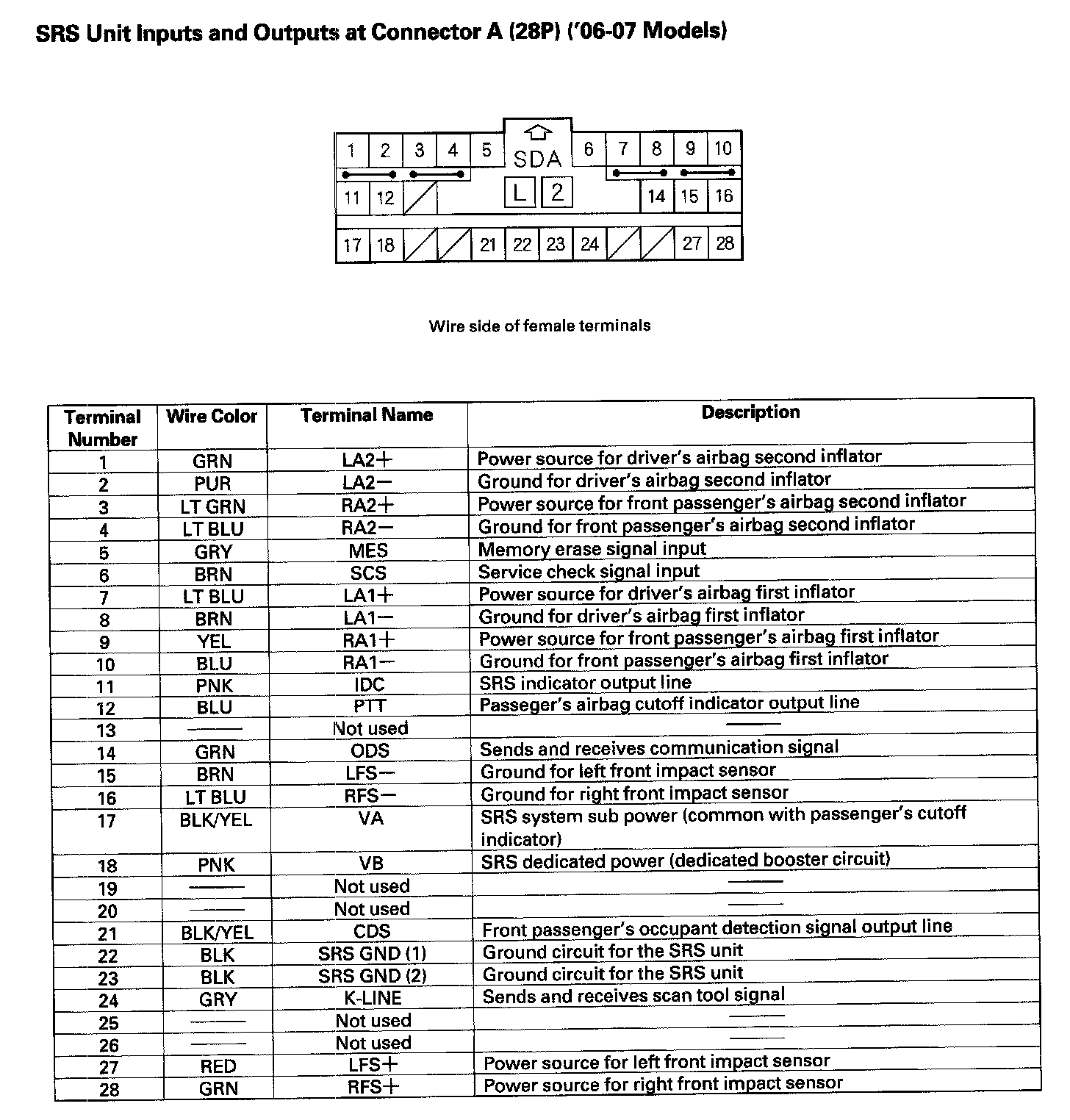 SRS Unit Inputs And Outputs At Connector A (28P)