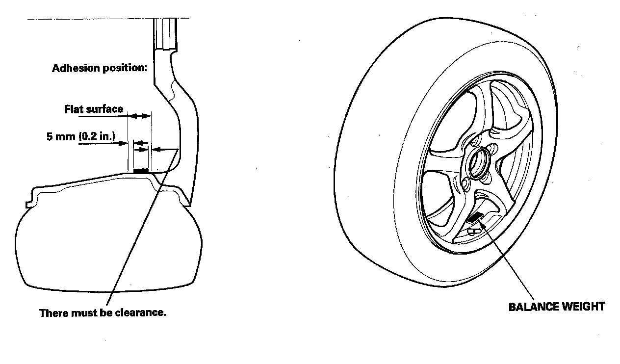 The wheels on this model are not designed to mount the balance weight on the outer side of the wheel. Instead, mount the self-adhesive balance weight on the inner side of the wheels. Note the following service tips and install the weights securely.