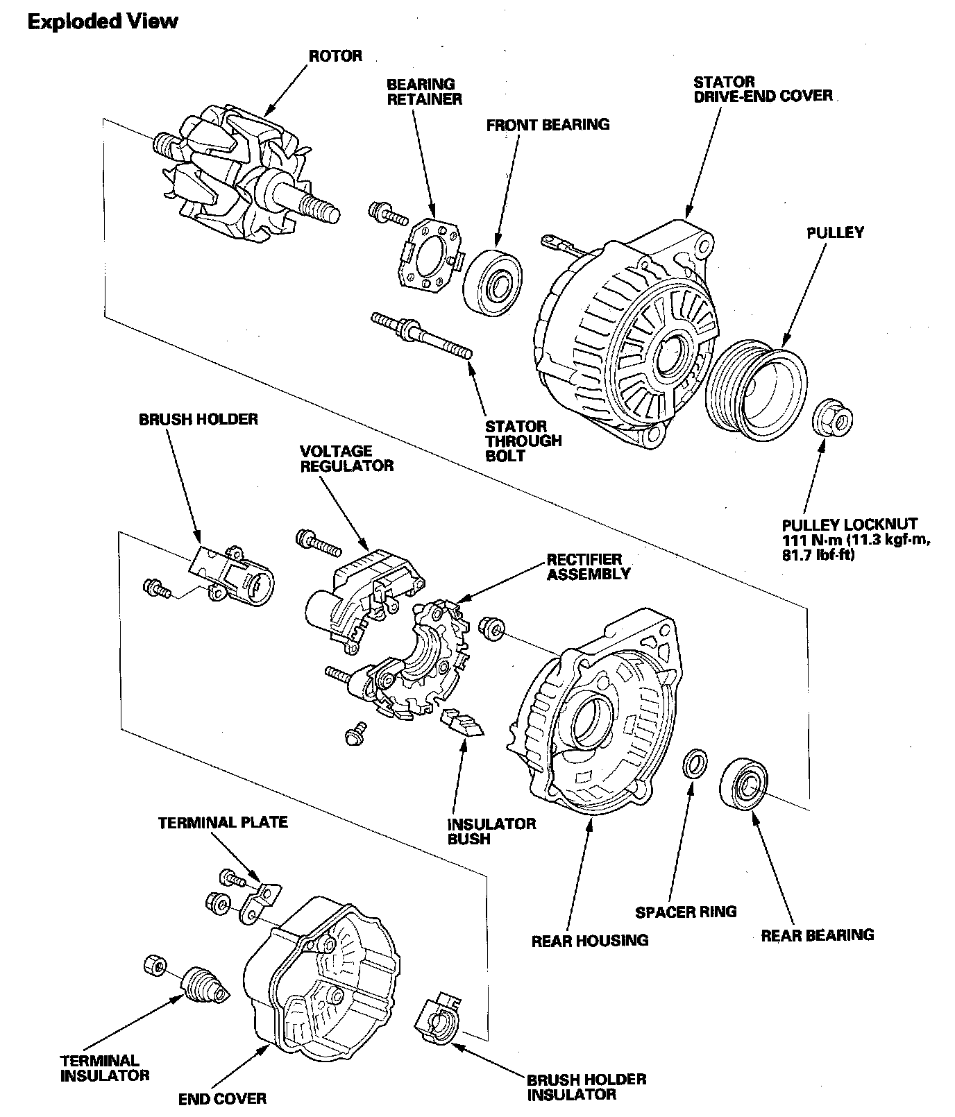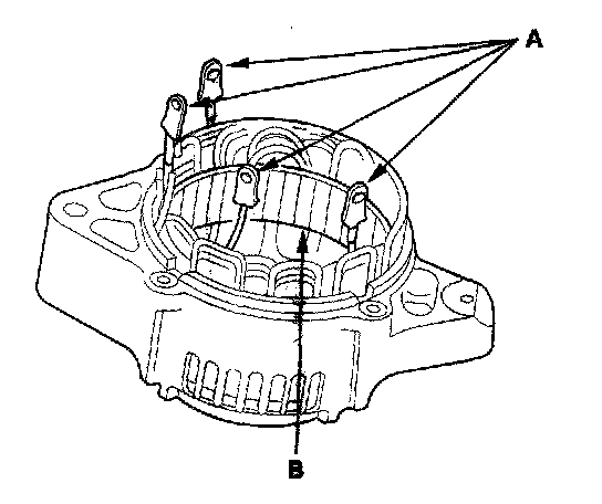 24. Reassemble the alternator in the reverse order of disassembly, and note these items: