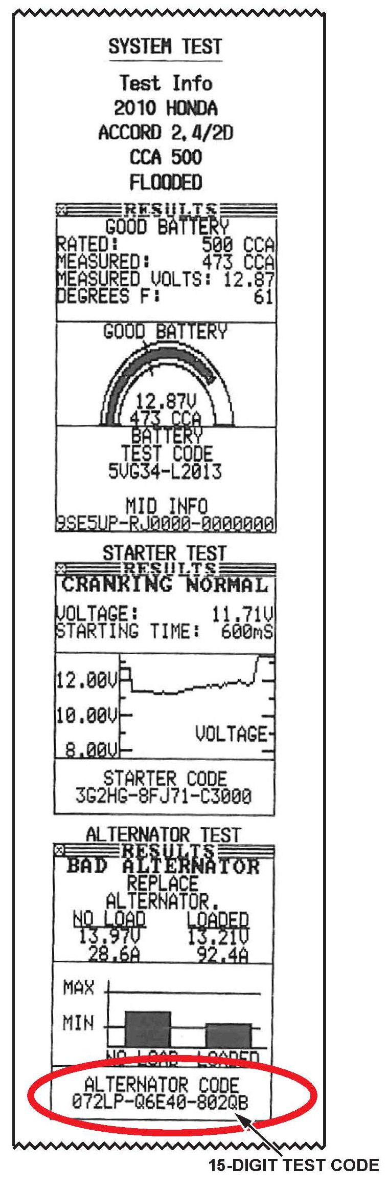 ^ The alternator test printout that states REPLACE ALTERNATOR must be attached to the repair order or the warranty claim will be subject to debit.