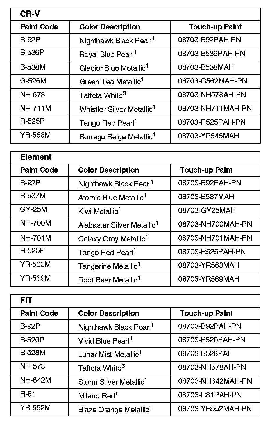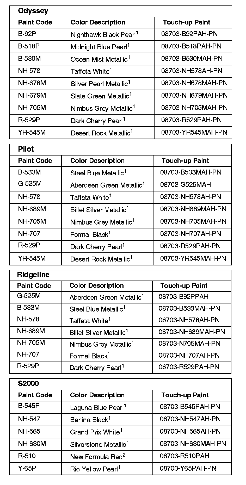 2007 Honda Paint Codes, Exterior and Interior Color Code Locations