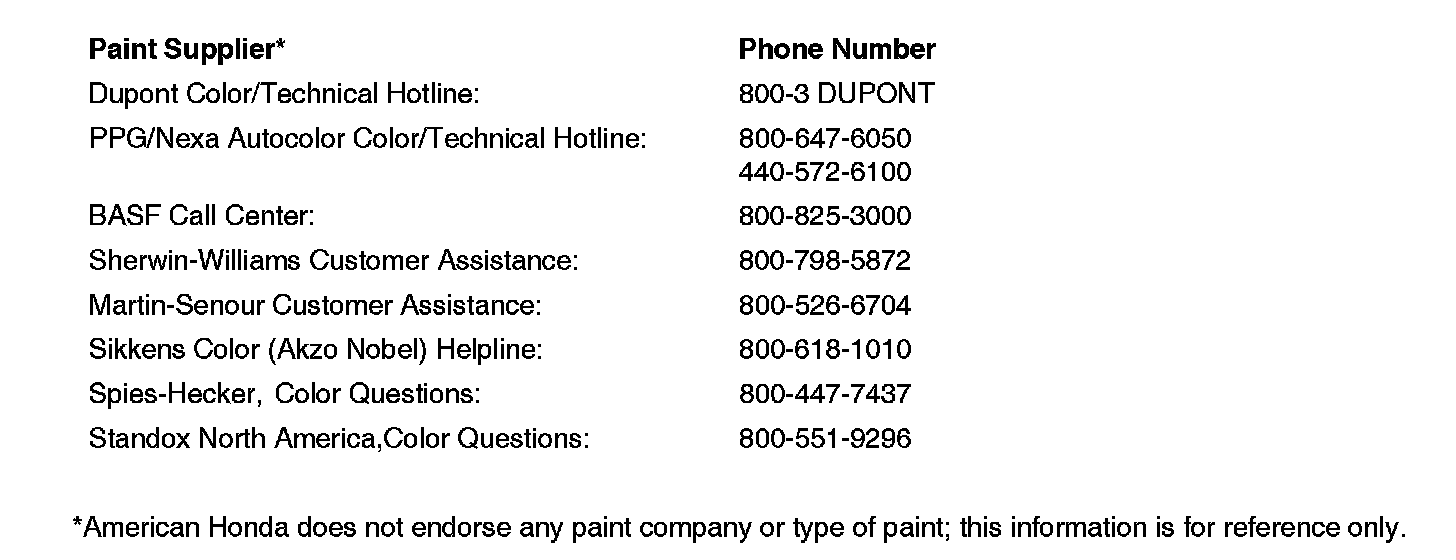 Paint formulations are determined by each paint company. For questions about formulas or color matching, call your paint supplier or one of the companies listed at the end of this service bulletin.