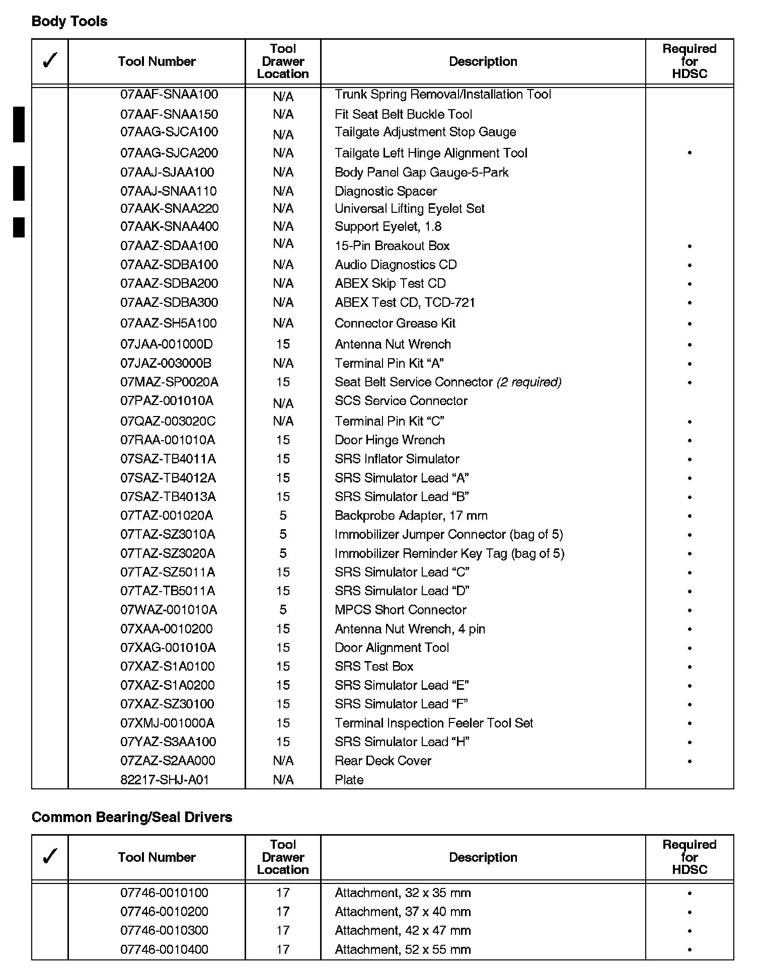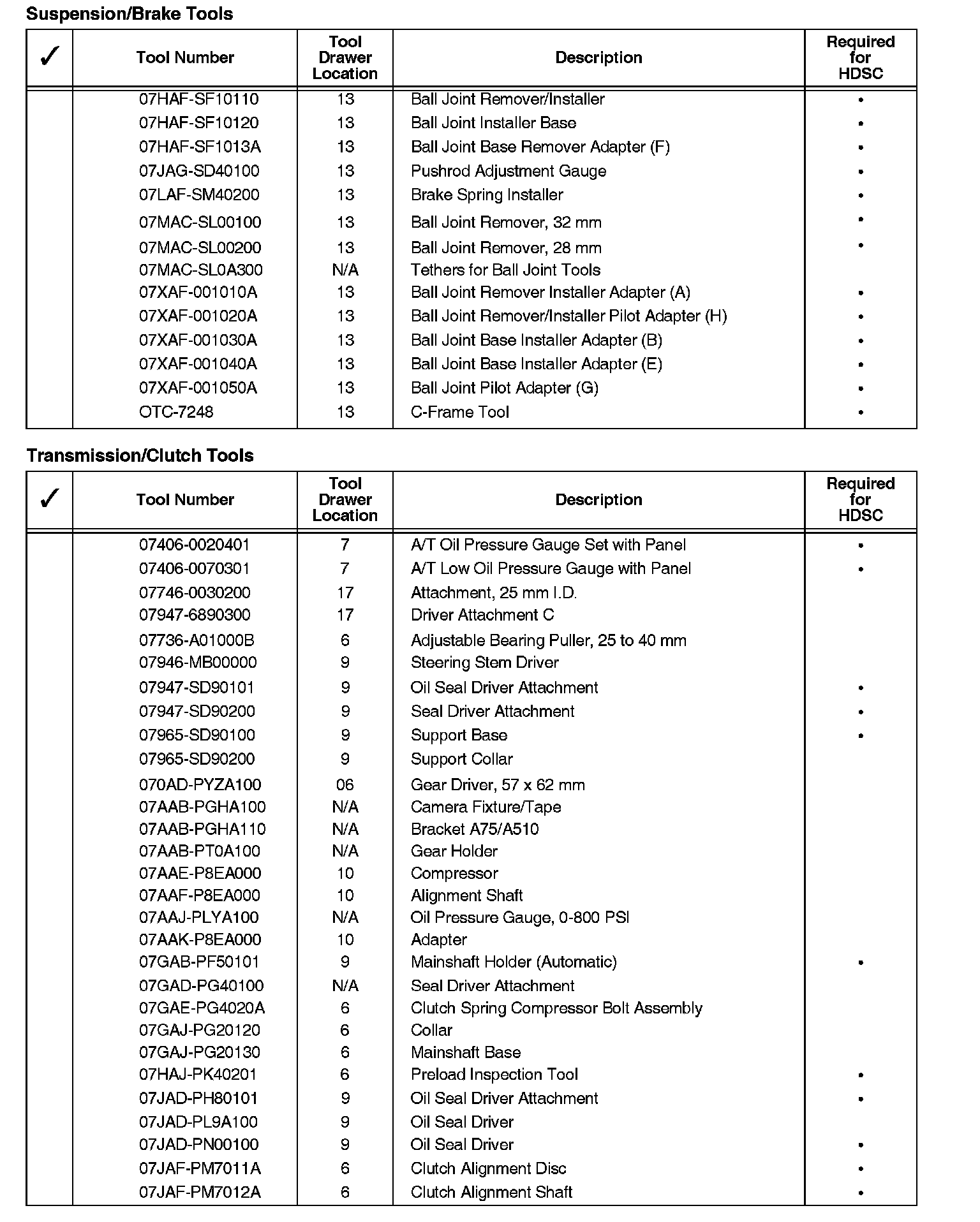 When a new model is introduced and requires service tools, those tools may be shipped to you automatically. If you receive a required service tool and believe you have an equivalent, refer to the Honda Service Operations Manual, Section 11, for the procedure to return items.