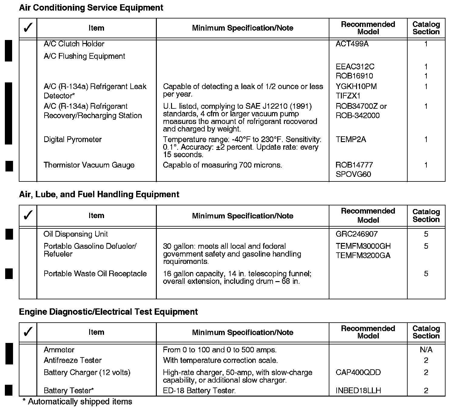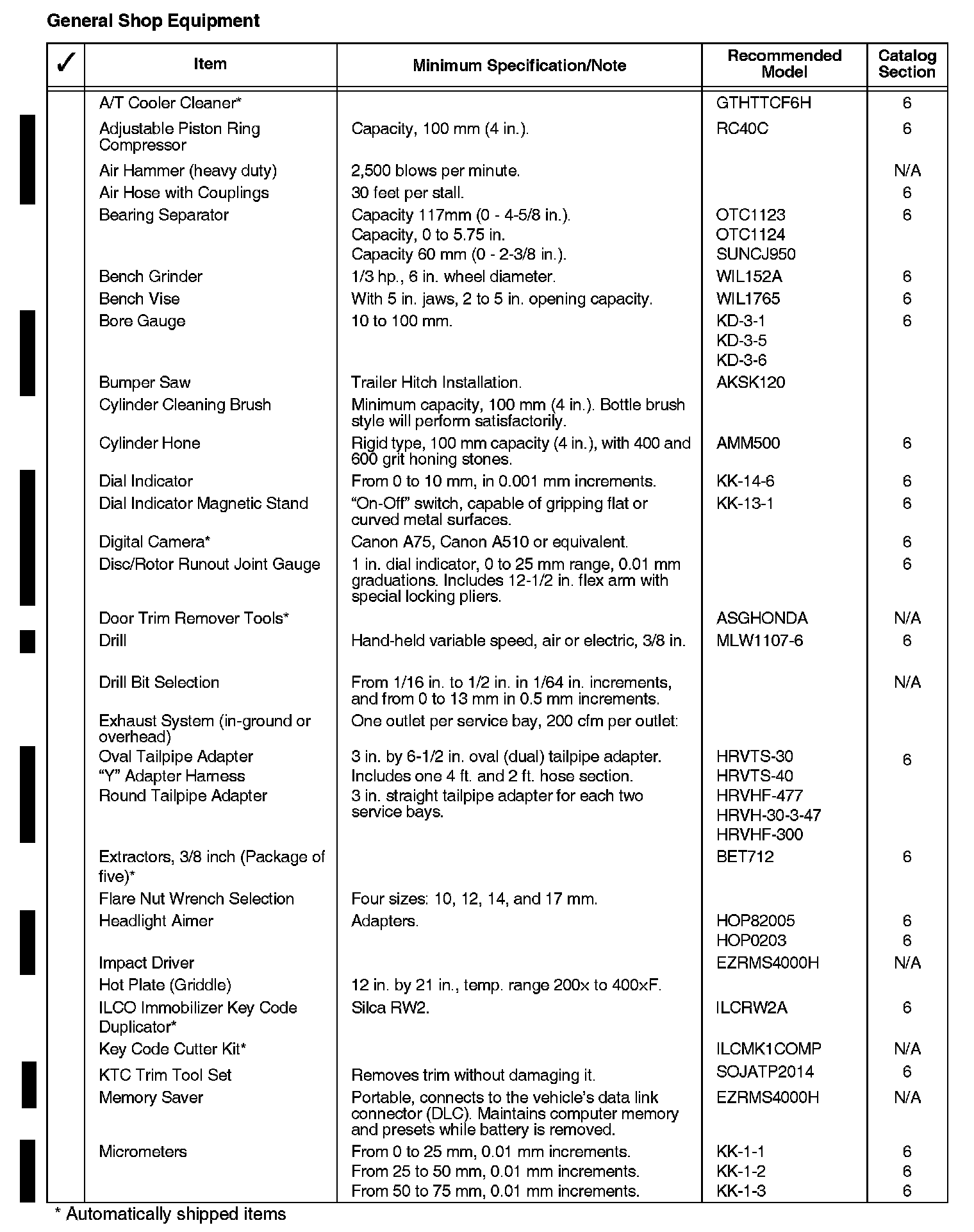 In accordance with the Automobile Sales and Service Agreement, Section 3.9, your service department is required to have, at a minimum, the tools and equipment listed in this bulletin.