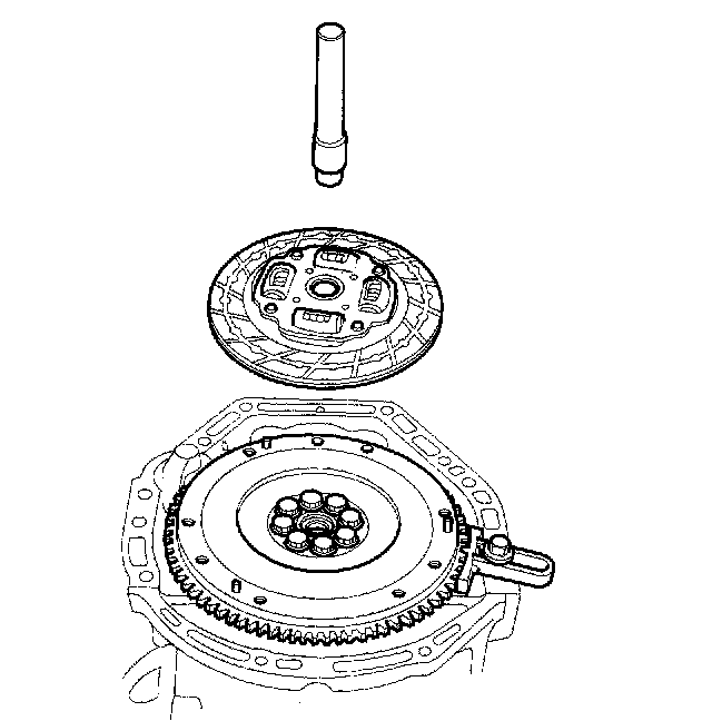 6. Install the special tool, then torque the flywheel mounting bolts in a crisscross pattern in several steps.