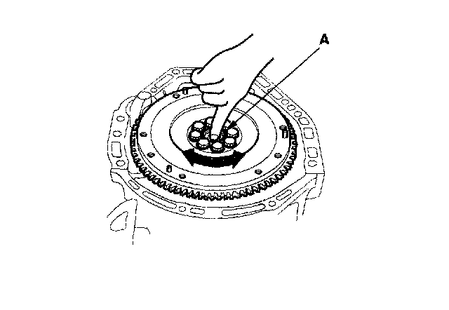 2. Remove the flywheel mounting bolts in a crisscross pattern in several steps, then remove the flywheel.