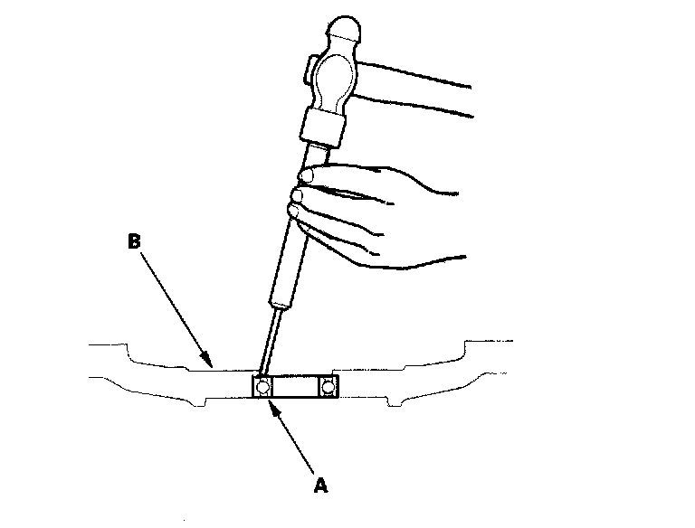 4. Drive the new ball bearing into the flywheel using the special tools as shown. Apply a light coat of oil to the bearing surface.
