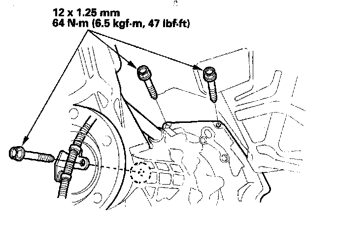 6. Install the three upper transmission mounting bolts.