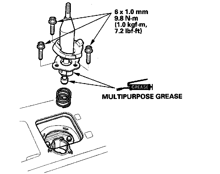 40. Apply multipurpose grease where shown. Install the shift lever spring and the shift lever.