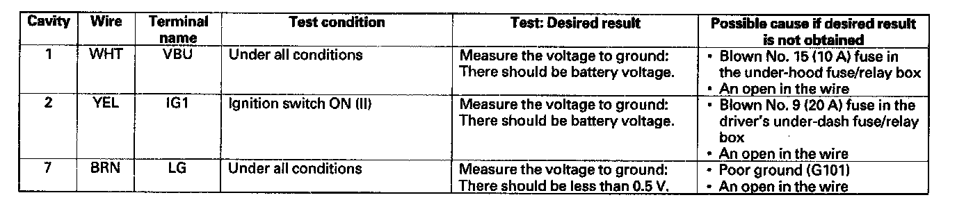 5. With the connector still disconnected, make these input tests at the connector.