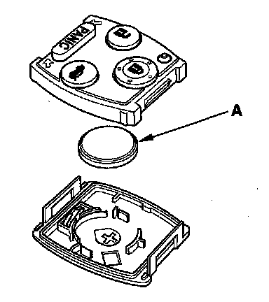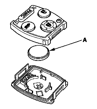 4. Replace the transmitter battery (A) with a new one, and try to lock and unlock the doors with the transmitter by pressing the lock or unlock button five or six times.