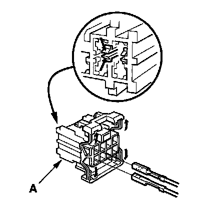 6. Disassemble the power mirror 8P connector (A), and remove all terminals from it.