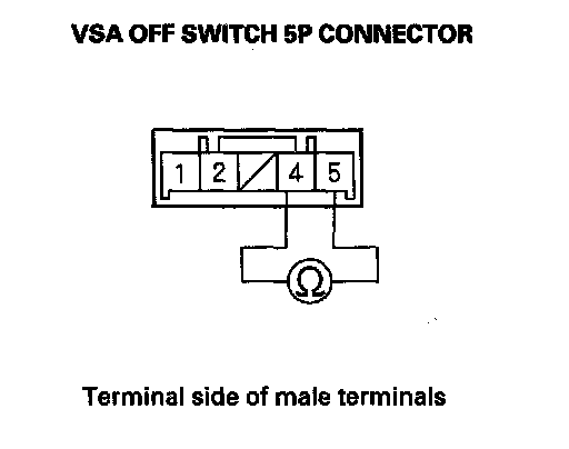 5. Check for continuity between VSA OFF switch 5P connector terminals No. 4 and No. 5. There should be continuity at all times.