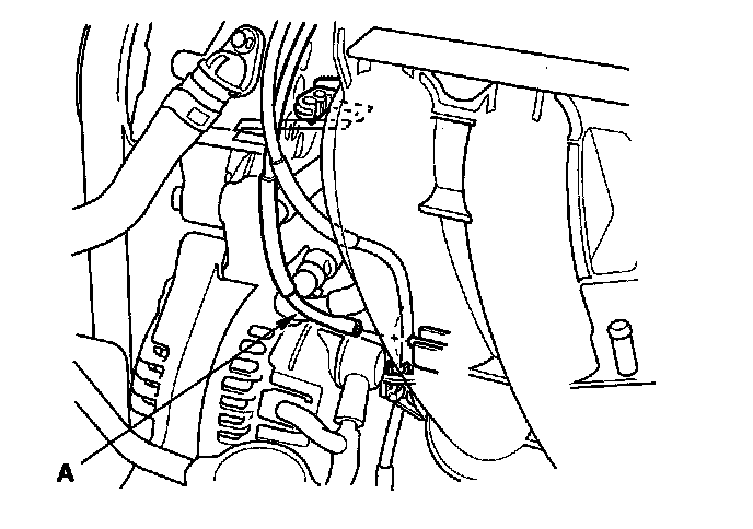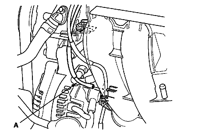 7. Remove the evaporative emission (EVAP) canister hose (A) and the brake booster vacuum hose (B).