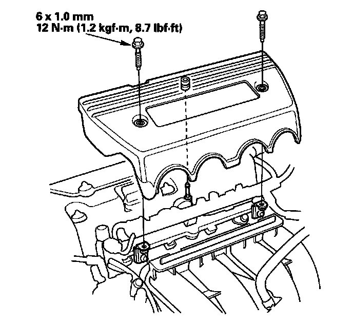 1. Install the positive crankcase ventilation (PCV) hose (A) to the intake manifold, then install the intake manifold (B) and tighten the bolts and nuts in a crisscross pattern in three steps, beginning with the inner bolt.