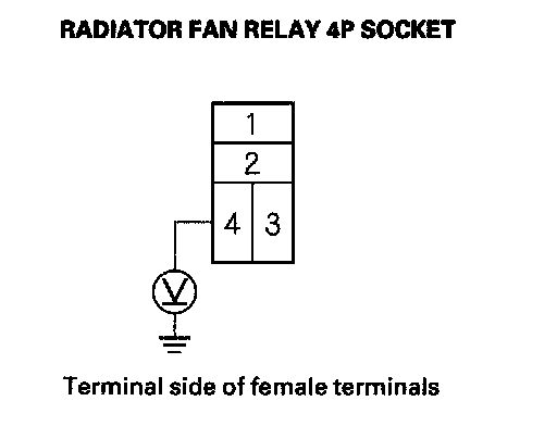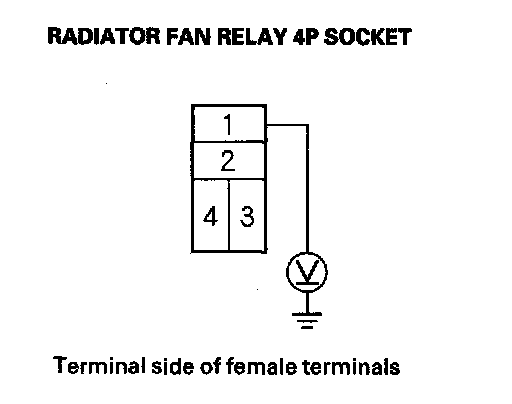 4. Measure the voltage between radiator fan relay 4P socket terminal No. 1 and body ground.