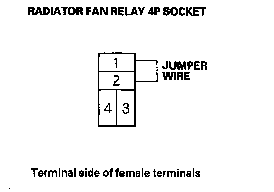 5. Connect radiator fan relay 4P socket terminals No. 1 and No. 2 with a jumper wire.