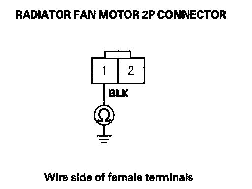 8. Check for continuity between radiator fan motor 2P connector terminal No. 1 and body ground.
