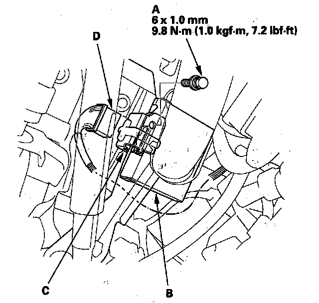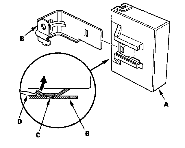 NOTE: While separating the TPMS control unit from the bracket, release the hook (C) on the TPMS control unit using a flat-tipped screwdriver (D), and push it up to remove the bracket.