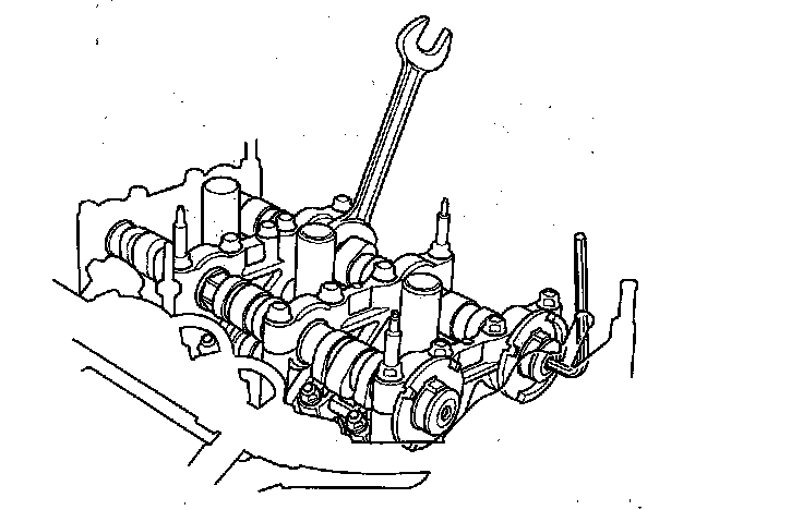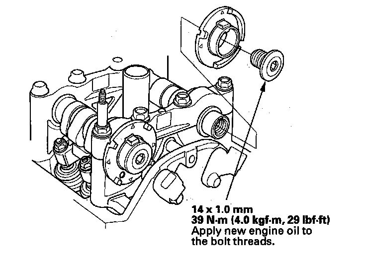 3. Hold the camshaft with an open-end wrench, then loosen the bolt.