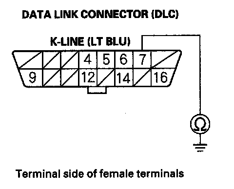 17. Check for continuity between DLC terminal No. 7 and body ground.
