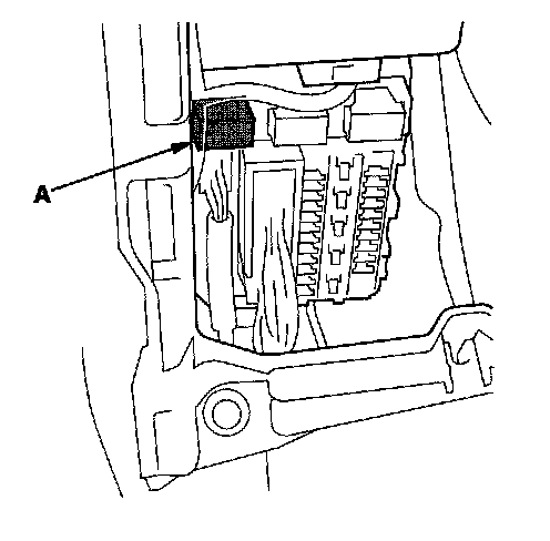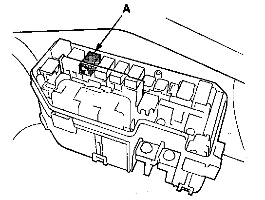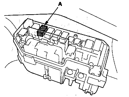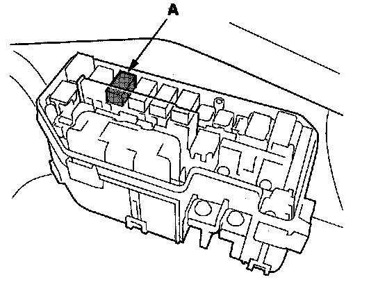 49. Remove PGM-FI main relay 2 (FUEL PUMP) (A) from the driver's under-dash fuse/relay box.