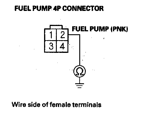 54. Check for continuity between fuel pump 4P connector terminal No. 2 and body ground.