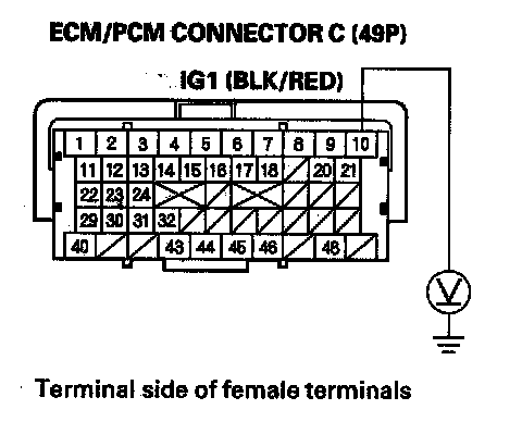 48. Check for continuity between ECM/PCM connector terminal C10 and body ground.