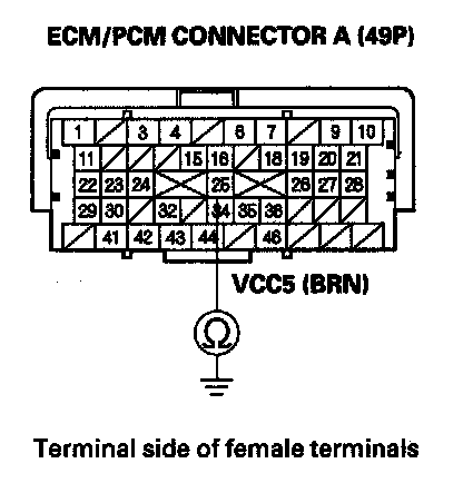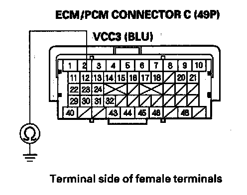 31. Check for continuity between ECM/PCM connector terminal A3 and body ground.