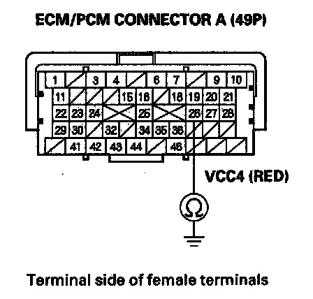 33. Check for continuity between ECM/PCM connector terminal A4 and body ground.