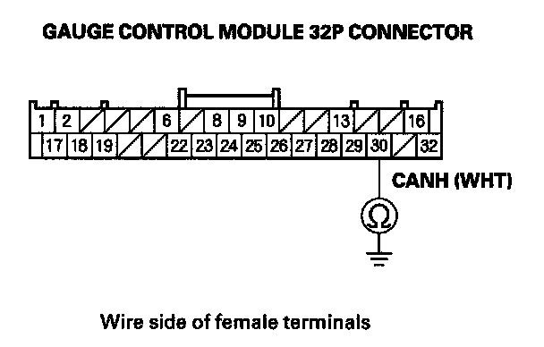 8. Check for continuity between gauge control module 32P connector terminal No. 30 and body ground.