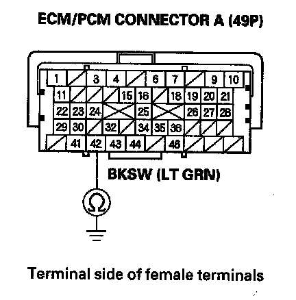8. Check for continuity between ECM/PCM connector terminal A42 and body ground.
