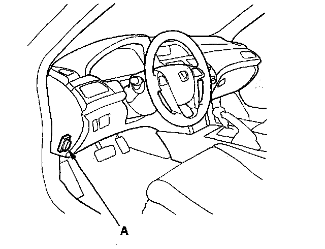 3. Connect the HDS to the DLC (A) located under the driver's side of the dashboard, and go to the A/T Data list.