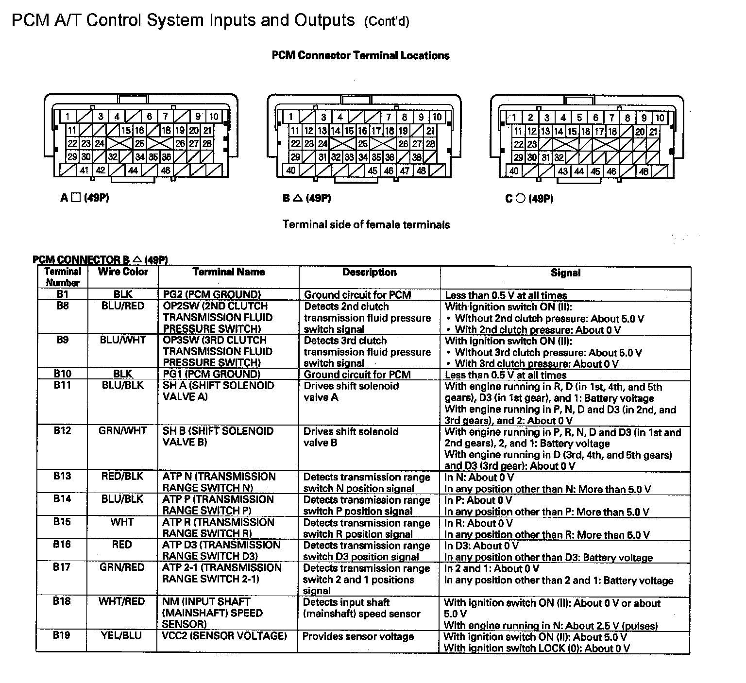 PCM A/T Control System Inputs and OutputsPCM A/T Control System Inputs and Outputs (Part 1):