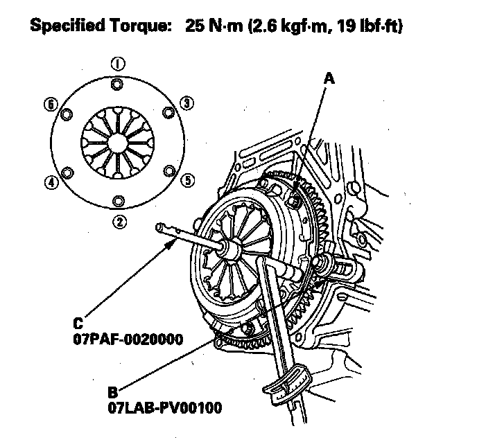 FlywheelTorque the flywheel mounting bolts (B) in a crisscross pattern in several steps.